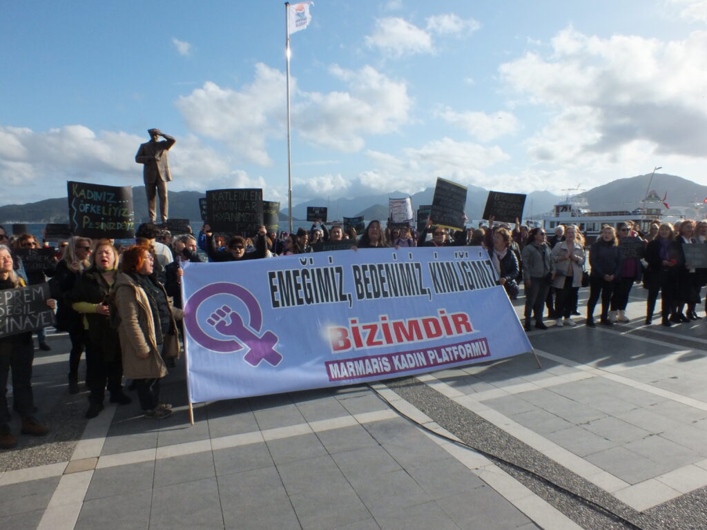 Marmaris Kadın Platformu 8 Mart Dünya Kadınlar Günü dolayısıyla, Ketenci Otel önünde bir araya gelerek Atatürk Heykeli’ne yürüdü.