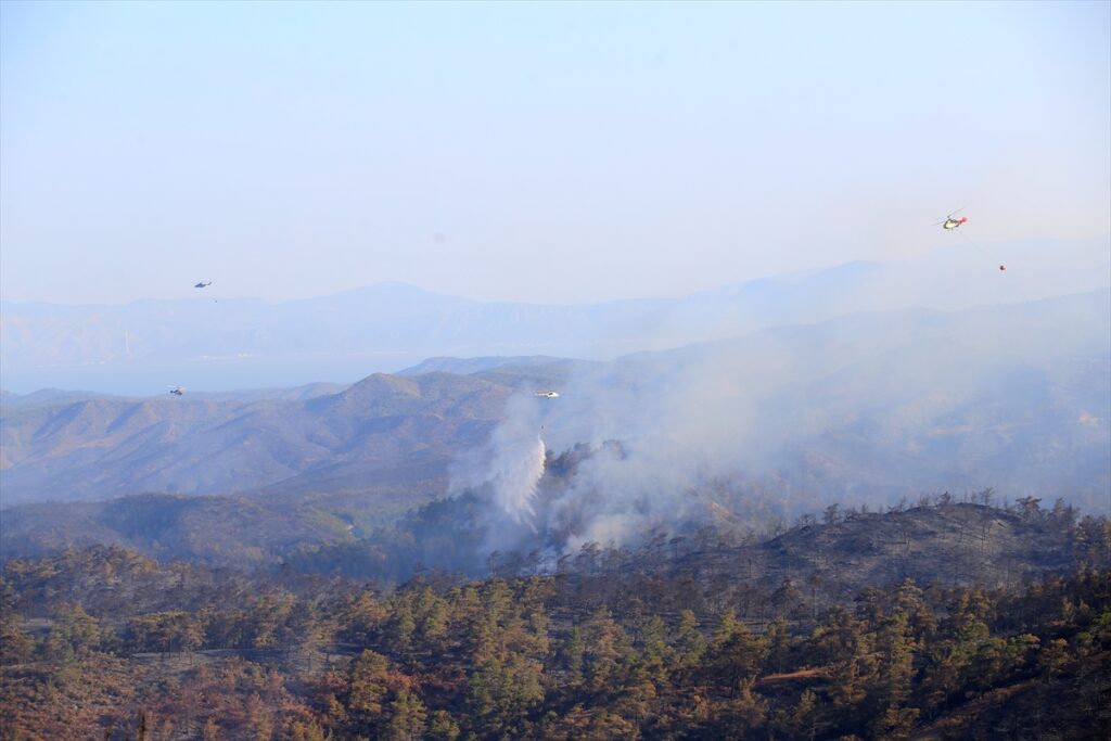 Muğla’nın Marmaris ilçesinde ormanlık alanda çıkan yangına havadan ve karadan yapılan müdahale devam ediyor.