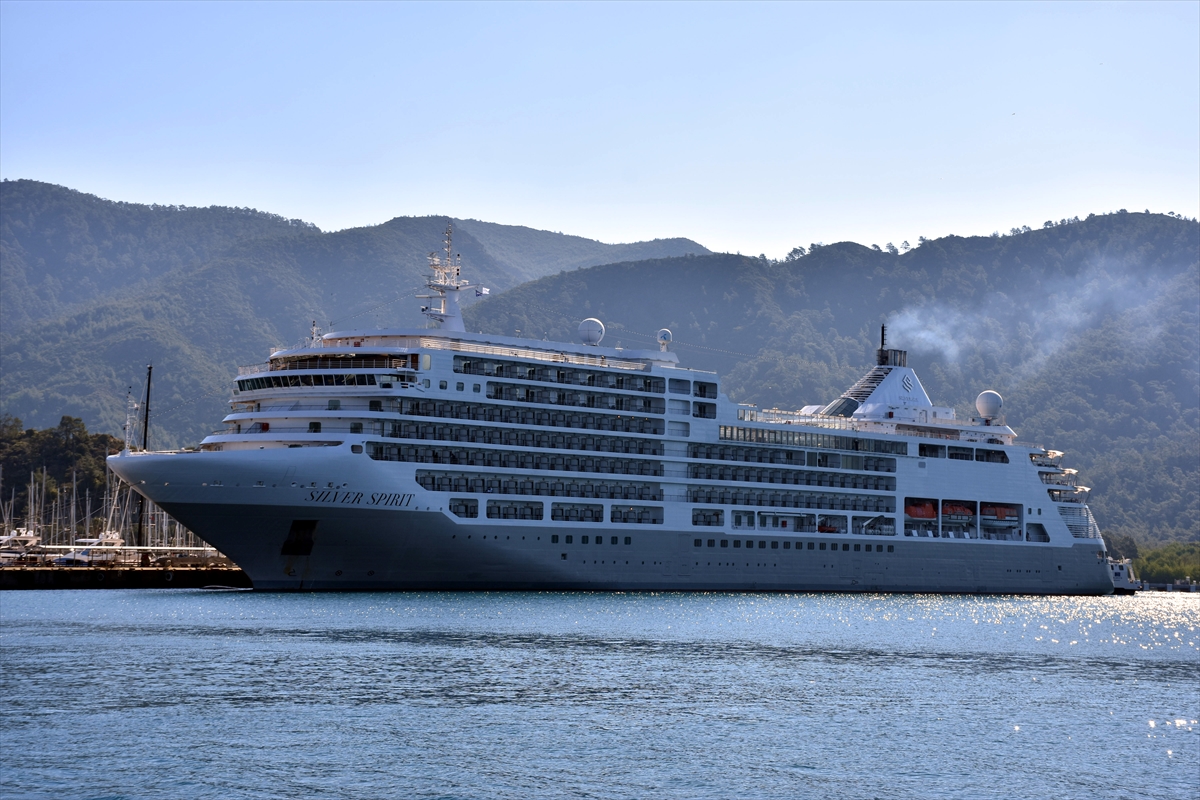 Muğla’nın Marmaris ilçesine sezonun ilk kruvaziyeri, ABD ve İngiliz yurttaşı 450 yolcuyla geldi.