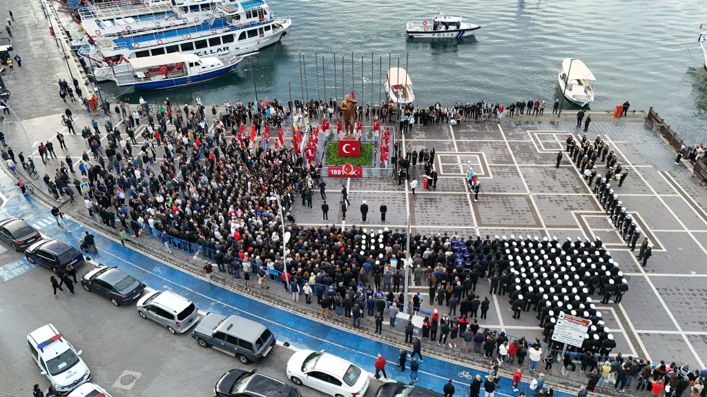 Muğla’nın Marmaris ilçesinde bulunan Atatürk Meydanı’nda, Türkiye Cumhuriyeti’nin kurucusu ve ilk Cumhurbaşkanı Mustafa Kemal Atatürk’ün ölümünün 87’nci yıl dönümü ve 10 Kasım Atatürk’ü Anma Günü dolayısıyla tören gerçekleştirildi.