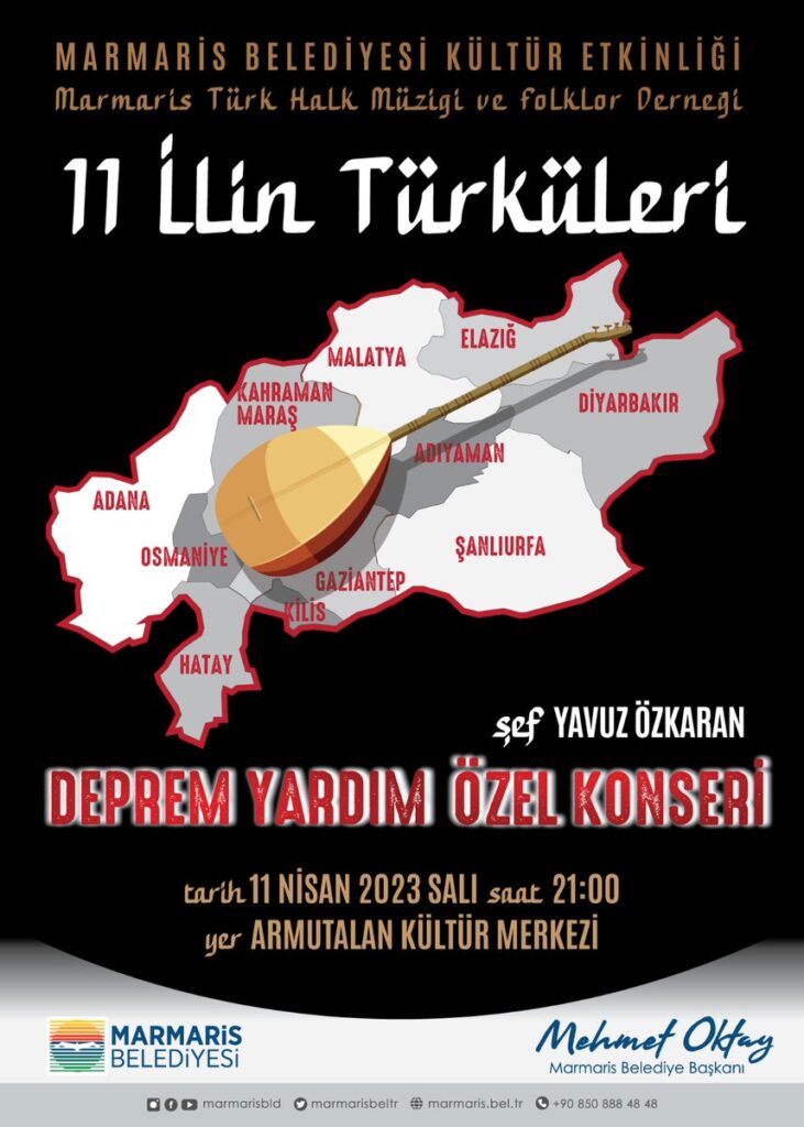 Muğla’nın Marmaris ilçesinde Marmaris Belediyesi’nin deprem yardım konseri düzenleyeceği bildirildi.