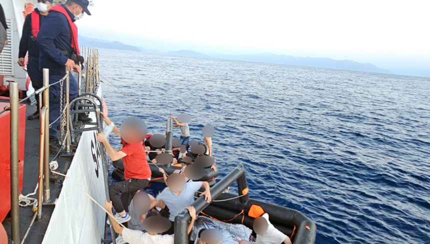 Muğla’nın Marmaris ilçesi açıklarında Yunanistan Sahil Güvenlik unsurları tarafından Türk karasularına geri itilen can salları içinde 39 düzensiz göçmen kurtarılırken, iki göçmen kaçakçılığı şüphelisi yakalandı.