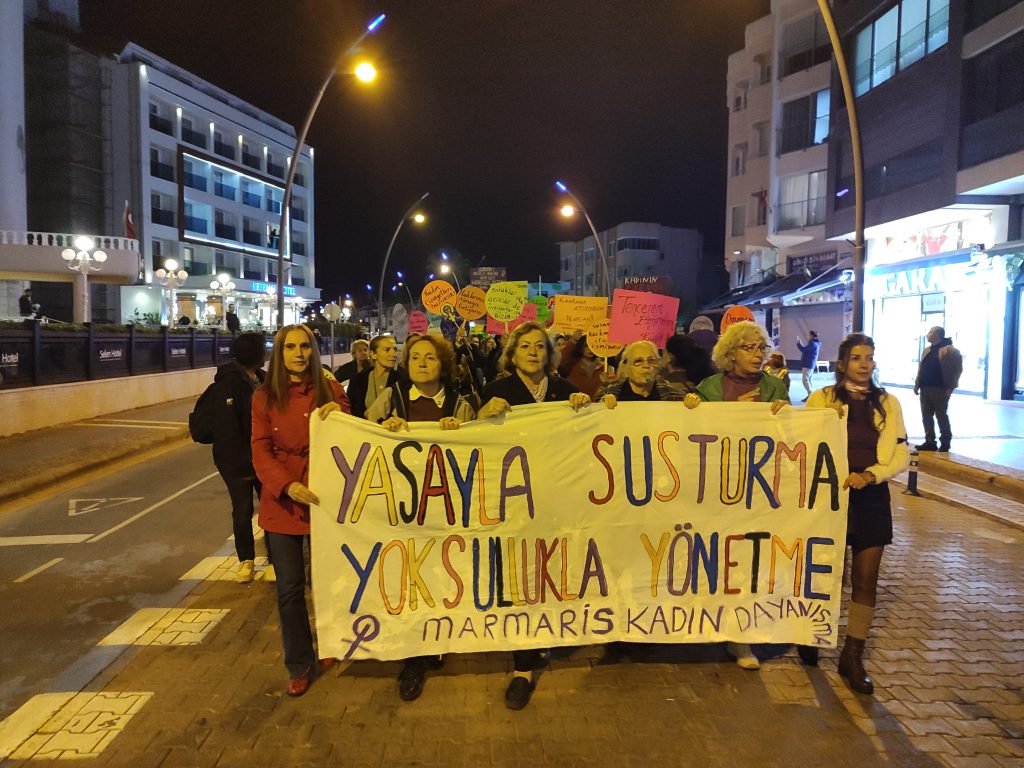 Marmaris Kadın Dayanışma’nın çağrısıyla kadınlar, 25 Kasım Kadına Yönelik Şiddetle Mücadele Günü’nde Muğla’nın Marmaris ilçesinde bir araya gelerek yürüyüş ve basın açıklaması yaptı. Açıklamada, “Bu ülkede yaşamak, kadınlar için hâlâ bir direniş biçimi” denildi.