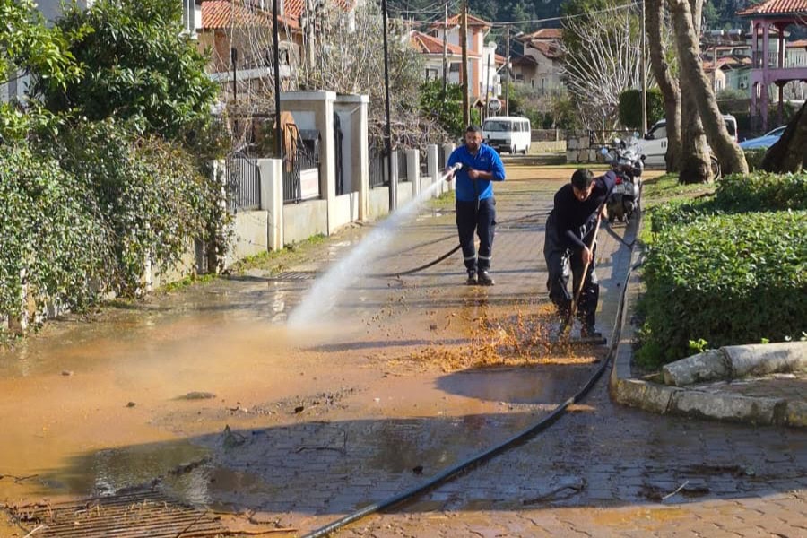 Marmaris Belediyesi Temizlik İşleri Müdürlüğü ekipleri, selden etkilenen evlerde temizlik, cadde ve sokaklarda ise yıkama çalışması yaptı.