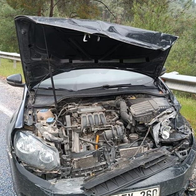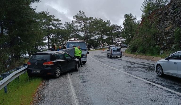 Muğla’nın Marmaris ilçesine bağlı Armutalan Mahallesi’ndeki Seyirtepe mevkisinde yağıştan kayganlaşan yolda direksiyon hakimiyetini kaybeden sürücü, bariyerlere çarparak durabildi.