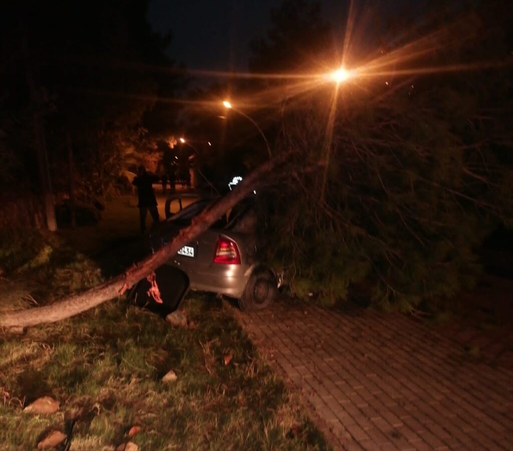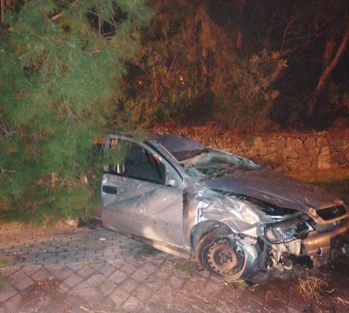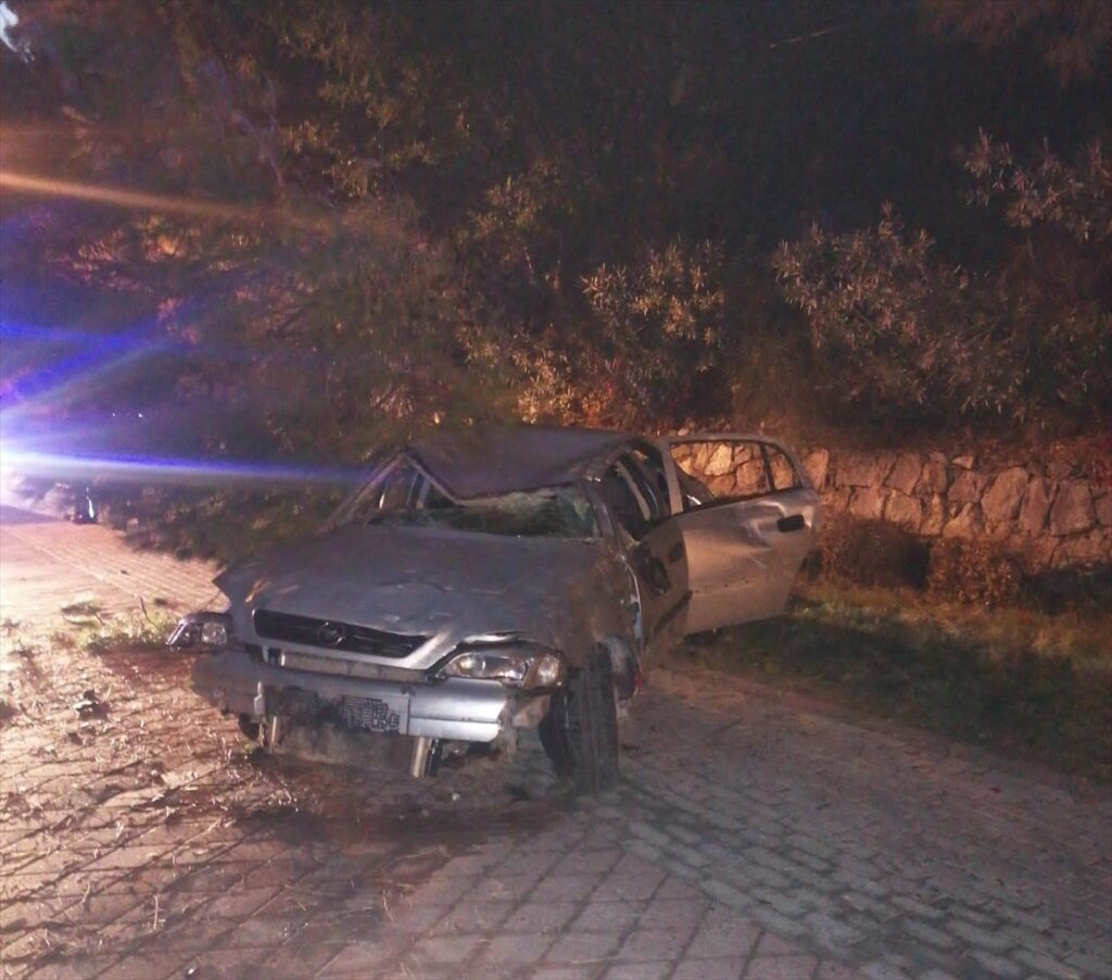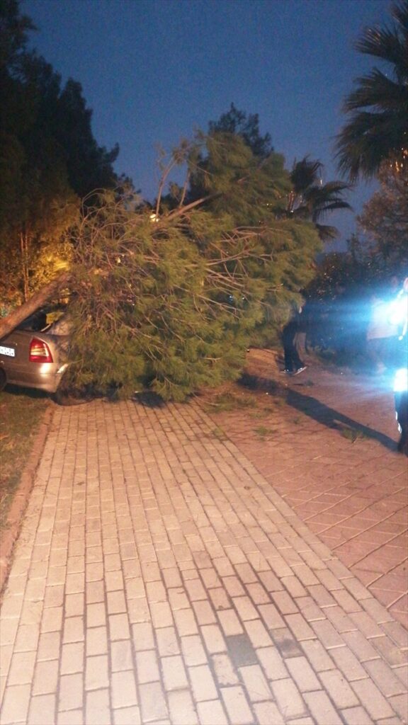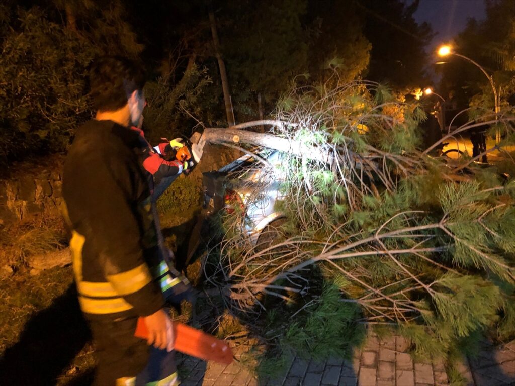 Yaklaşık 30 metre yükselikten İçmeler Sahili yürüyüş yoluna düşen otomobilin devirdiği ağacın altında kalan aracın sürücüsü ile beraberindeki 27 yaşındaki T.K yaralandı.