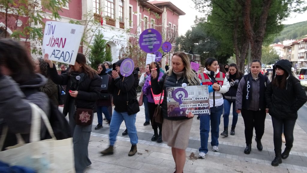 Menteşe Kadın Platformu’nun çağrısıyla kadınlar, 25 Kasım Kadına Yönelik Şiddete Karşı Uluslararası Mücadele Günü kapsamında Muğla’nın Menteşe ilçesinde yürüyüş düzenledi ve basın açıklaması yaptı. Açıklamada, “Tüm kadınları ve LGBTİ+ları mücadeleyi birlikte büyütmeye çağırıyoruz” denildi.