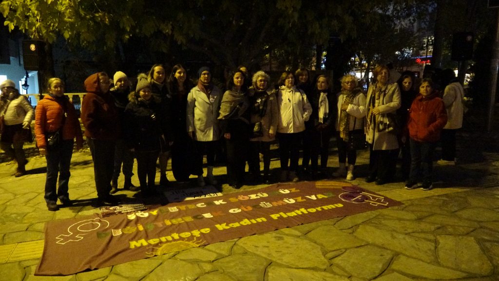25 Kasım Kadına Yönelik Şiddete Karşı Uluslararası Mücadele Günü’nde kadınlar, Muğla’nın Menteşe ilçesinde bir araya geldi. Menteşe Kadın Platformu’nun çağrısıyla, kadınlar saat 17.30’da Akyol Parkı’nda toplandı ve 17.45’te Sınırsızlık Meydanı’na yürüdü.