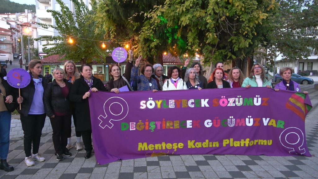 Muğla’nın Menteşe ilçesinde kadınlar, Menteşe Kadın Platformu çağrısıyla 25 Kasım Kadına Yönelik Şiddetle Mücadele Günü’nde bir araya gelerek yürüyüş ve basın açıklaması yaptı. Basın açıklamasında, “İstanbul Sözleşmesi’nden, eşit işe eşit ücret talebimizden, güvenceli iş güvenli gelecek talebimizden, barış içinde yaşama talebimizden, laiklik, eşitlik ve özgürlük mücadelemizden vazgeçmiyoruz” dendi. Muğla’nın Menteşe ilçesinde 25 Kasım Kadına Yönelik … Menteşe’de kadınlar 25 Kasım’da bir araya geldi: “Hakkımız olanı yaşadığımız her yerde mücadeleyi büyütürsek kazanacağımızı biliyoruz” okumayı sürdür