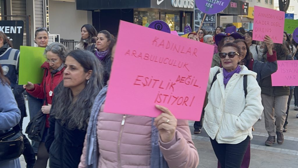“Bugün erkek egemenliğine, erkek şiddetine, emeğimizin sömürüsüne, savaşa, bütün yaşam alanlarımızı daraltan neoliberal ve otoriter politikalara karşı eşitlik, laiklik ve özgür yaşam hakkımızı savunmak için bir kez daha dünyanın dört bir yanında ve ülkenizde sokaklardayız, meydanlardayız.”
