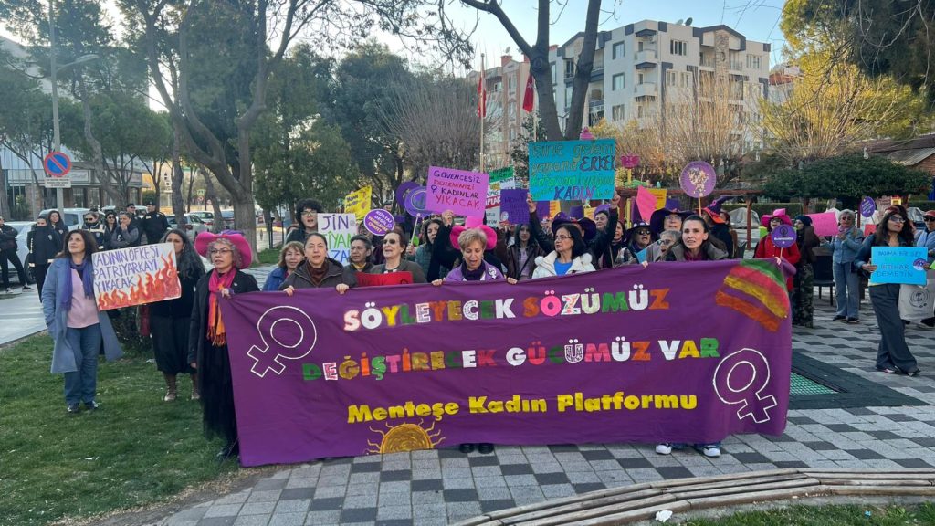 Muğla’nın Menteşe ilçesinde kadınlar, 8 Mart Dünya Kadınlar Günü’nde Menteşe Kadın Platformu’nun çağrısıyla saat 18.00’de Akyol Parkı’nda bir araya geldi.