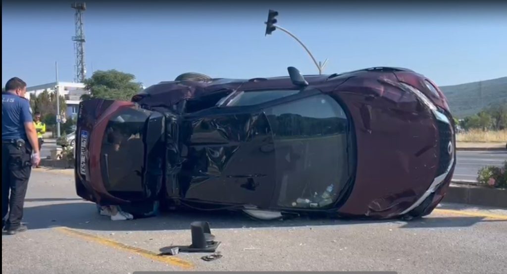 Muğla’nın Menteşe ilçesinde Atatürk Bulvarı üzerinde iki aracın çarpışması sonucu araçlardan biri yan yattı.