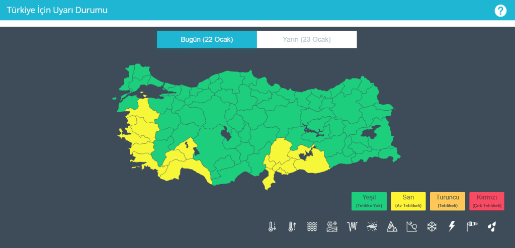Etiketler: mgm 15 il için sarı kodlu uyarı, hava durumu antalya, muğla hava durumu, aydın hava durumu, meteoroloji genel müdürlüğü