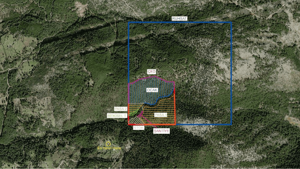 Toplam ruhsat alanının 99,60 hektar, ÇED alanının ise 19,57 hektar olacağı belirtilmişti.