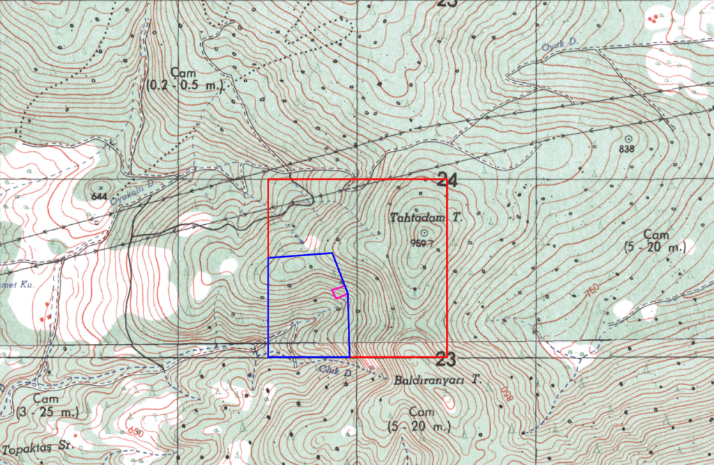 Faaliyet sahasına ulaşımın mevcut orman yolundan sağlandığı ve sahanın tamamen ormanlık alan olduğu belirtildi.