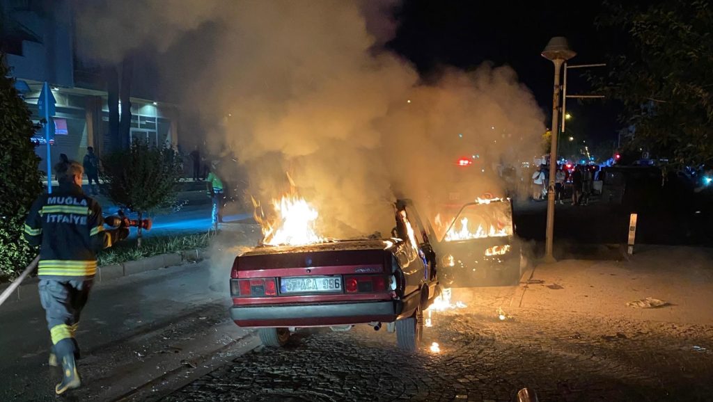 Muğla’nın Milas ilçesine bağlı İsmetpaşa Mahallesi Atatürk Bulvarı üzerinde seyir halinde olan otomobilde bilinmeyen bir nedenle yangın çıktı. Sürücü aracını kenara çekip dışarı çıkarken, alevler tüm otomobili sardı.