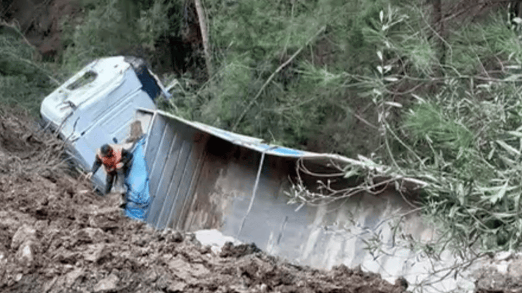 Muğla’nın Milas ilçesi Çamlıbelen mevkiinde seyir halindeki bir tır henüz belirlenemeyen bir nedenle kontrolden çıkarak şarampole devrildi.
