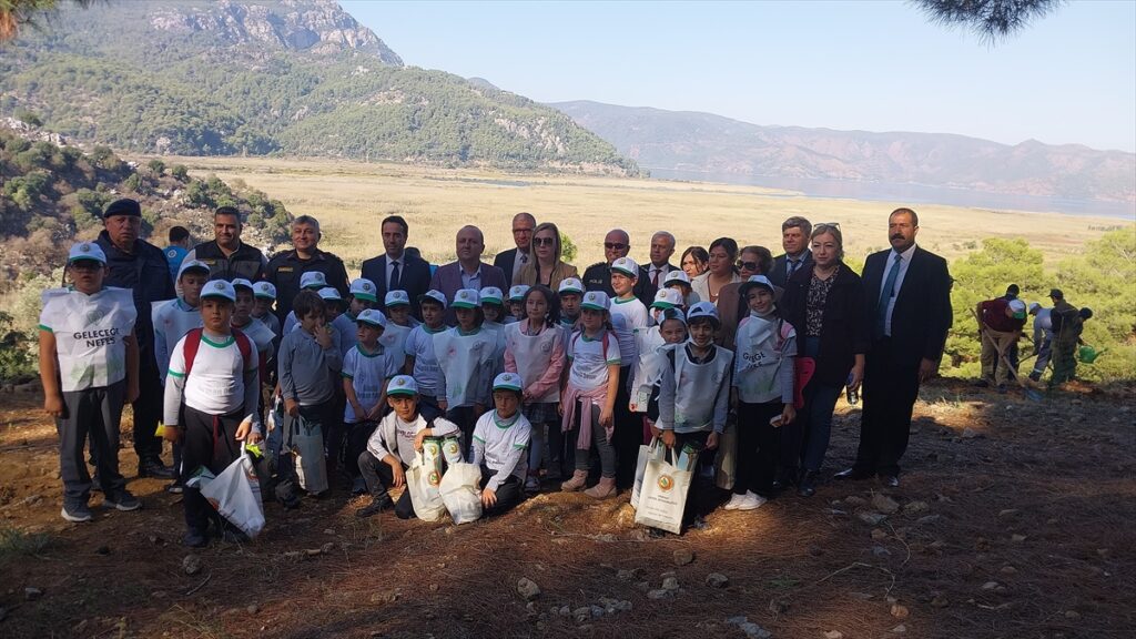 Muğla Orman Bölge Müdürlüğü’ne bağlı Ortaca Orman İşletme Şefliği ekipleri tarafından hazırlanan alanda, Ortaca Kaymakamı Meral Uçar, protokol ve öğrenciler fidan dikimi yaptı ve fidanlara can suyu verdi.