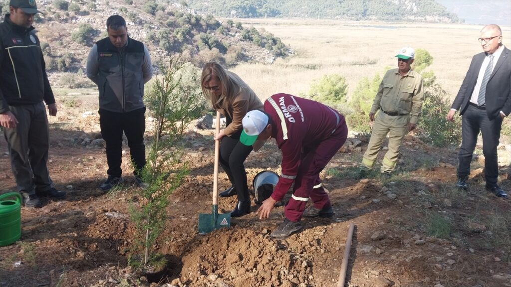 Ortaca’nın Dalyan Mahallesi Karadağ mevkisinde ise; mazı, harnup ve lavanta gibi türlerden oluşan yüzlerce fidan dikildi. Görevliler tarafından katılımcılara fidanların nasıl dikileceği konusunda bilgi verildi.