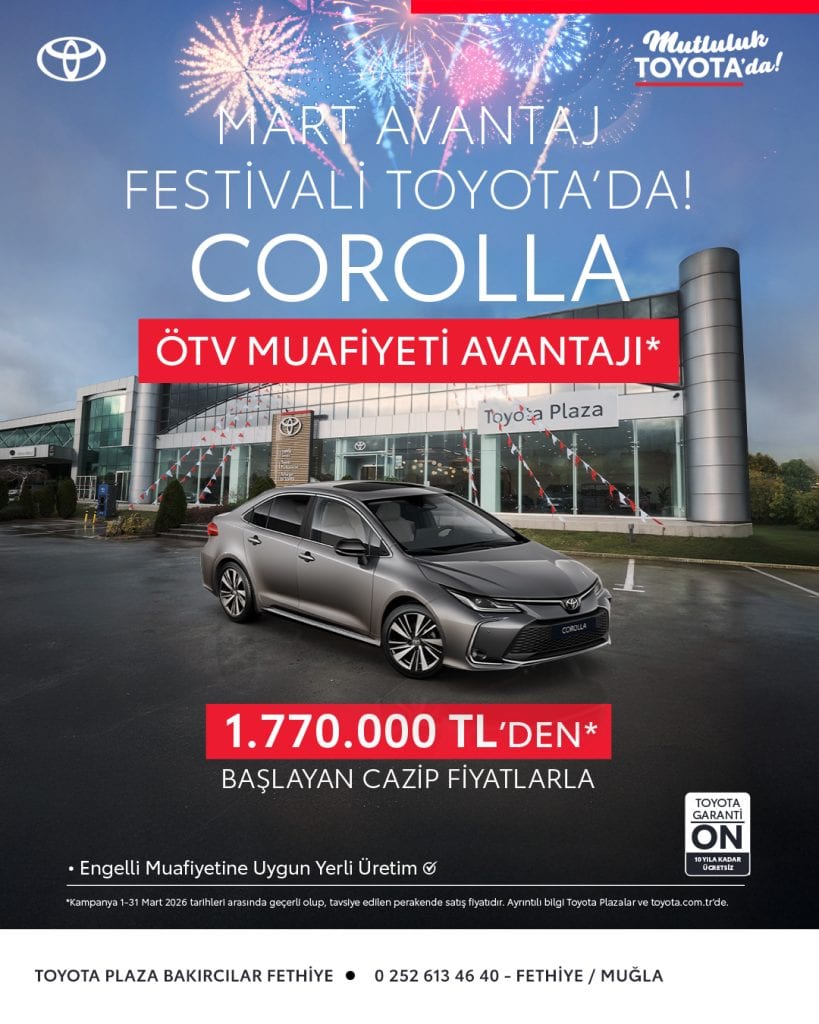 Avantaj festivali Toyota’da! Mart ayına özel avantajlı fiyatlar ve cazip kampanyalarla hayalinizdeki Toyota’ya sahip olmak için Toyota Plaza Bakırcılar’ı ziyaret edebilirsiniz.