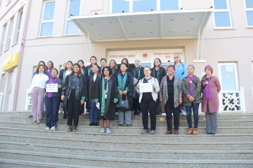 Muğla Barosu Kadın Hakları ve Toplumsal Cinsiyet Eşitliği Komisyonu, 25 Kasım Kadına Yönelik Şiddete Karşı Uluslararası Mücadele Günü dolayısıyla Muğla’nın Fethiye, Bodrum, Marmaris, Menteşe, Milas, Yatağan ve Seydikemer ilçelerinde bulunan adliye binaları önünde eş zamanlı açıklama yaptı.