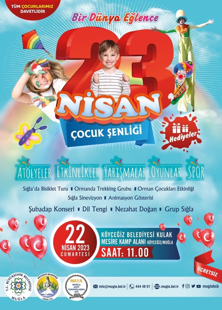 Muğla Büyükşehir Belediyesi, 23 Nisan Ulusal Egemenlik ve Çocuk Bayramı’nın 103’üncü yılı dolayısıyla 22 Nisan 2023 tarihinde Köyceğiz’de “23 Nisan Çocuk Şenliği” düzenleyeceğini açıkladı.