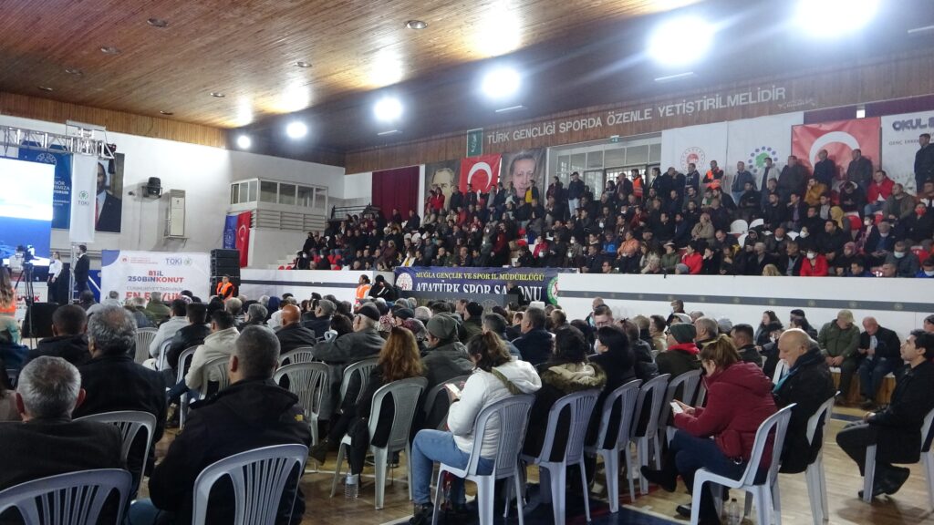 Bodrum, Menteşe ve Fethiye ilçelerinde inşa edilecek bin 369 konutun kura çekimi, bugün Menteşe Spor Salonu’nda başladı.