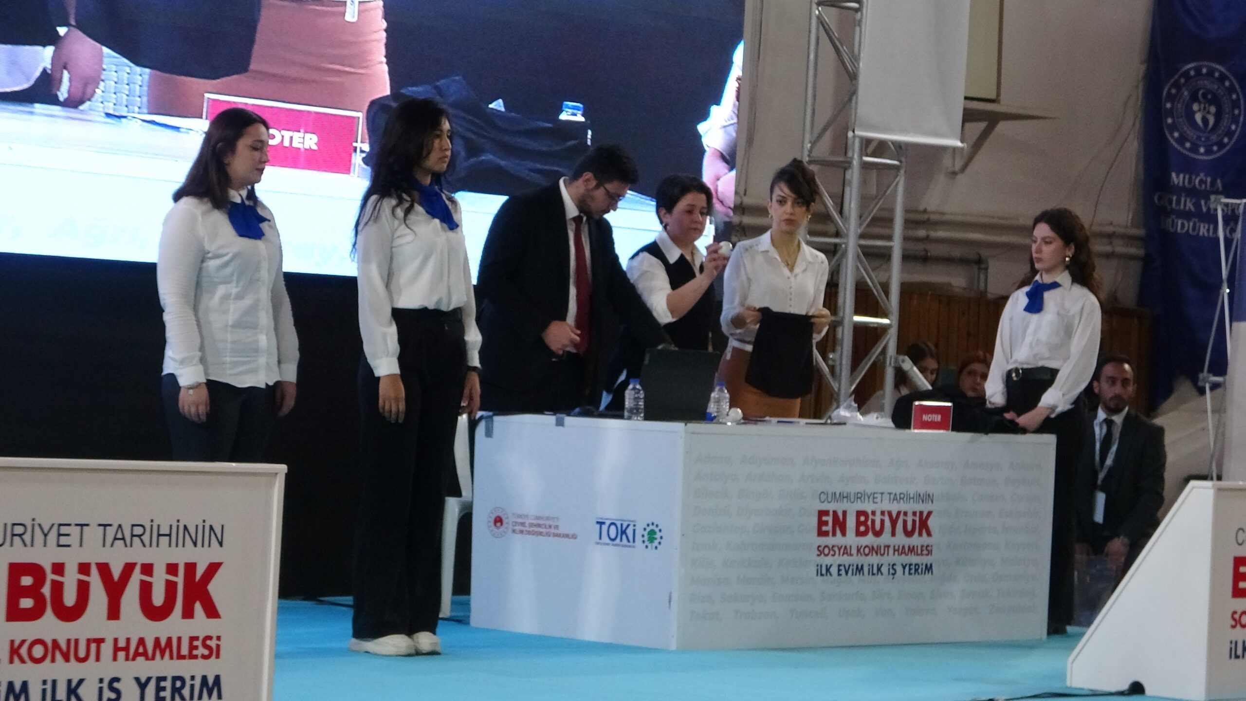 Bodrum, Menteşe ve Fethiye ilçelerinde inşa edilecek bin 369 konutun kura çekimi, bugün Menteşe Spor Salonu’nda başladı.