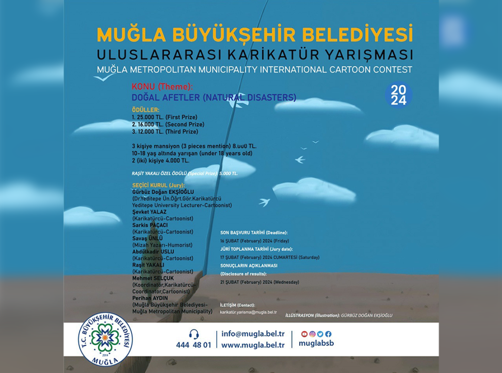 Muğla Büyükşehir Belediyesi tarafından bu yıl beşincisi gerçekleştirilecek olan, “doğal afetler” temalı uluslararası karikatür yarışmasının başvuruları başladı.