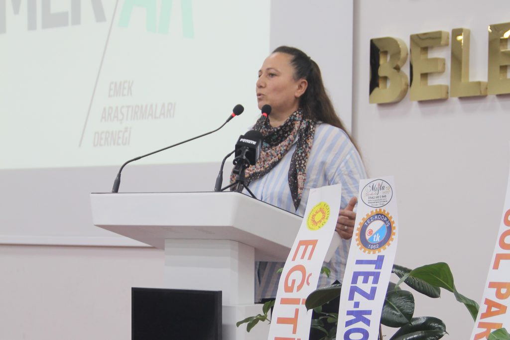 İkizköy Mahallesi Muhtarı Nejla Işık, “Doğanın Talanı ve Tarım Emkçileri” başlığıyla yaptığı konuşmasında, Muğla’nın Milas ilçesindeki Akbelen Ormanı’nda kömür madenine karşı sürdürdükleri mücadeleye dikkat çekti.