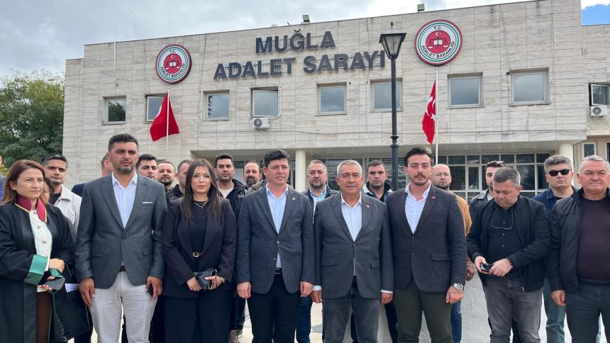 Muğla’da, 19 Mart 2025’te İstanbul Büyükşehir Belediyesi’ne yönelik başlatılan soruşturma kapsamında; Ekrem İmamoğlu ve 86 kişinin gözaltına alınmasını protesto etmek amacıyla Muğla Büyükşehir Belediye Başkanı Ahmet Aras, Marmaris Belediye Başkanı Acar Ünlü ve yurttaşlar; sloganlar eşliğinde Muğla Adalet Sarayı’na yürümüştü.