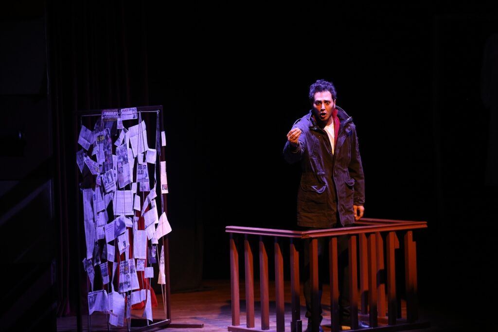 Muğla’nın Menteşe ilçesindeki Gazi Mustafa Kemal Atatürk Kültür Merkezi’nde kadına şiddete dikkat çekmek amacıyla “3. Sayfa” isimli tek perdelik müzikal dram türündeki tiyatro oyununu sahneledi.