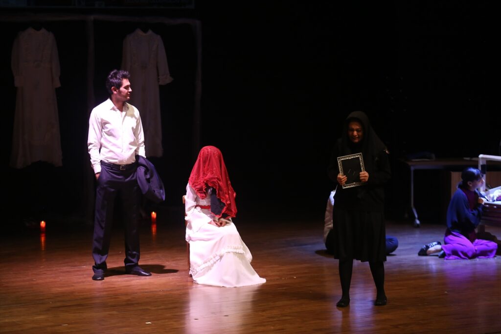 Oyunda İran’daki kadınların özgürlük mücadelesi de hatırlatıldı ve bir kadın oyuncu saçlarını kesti.