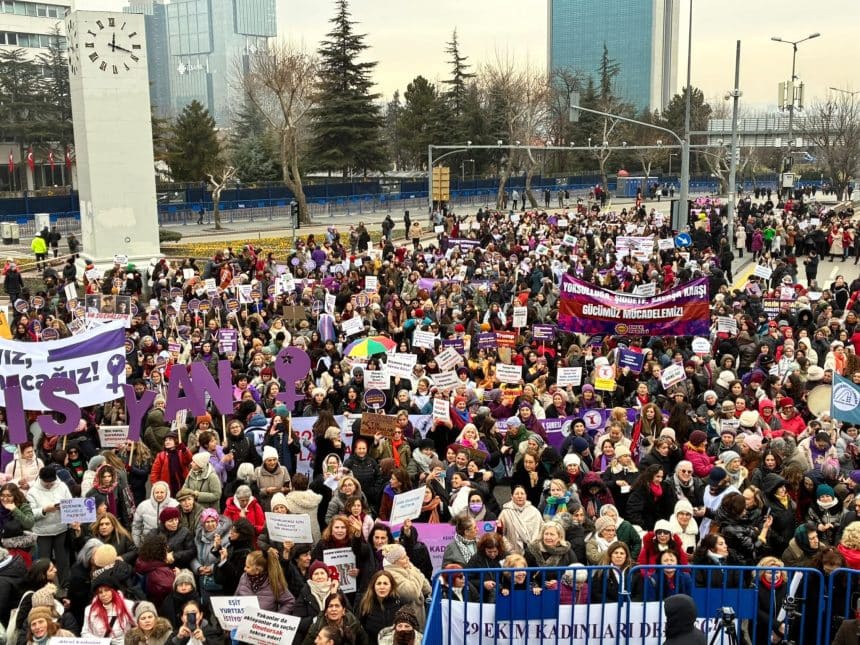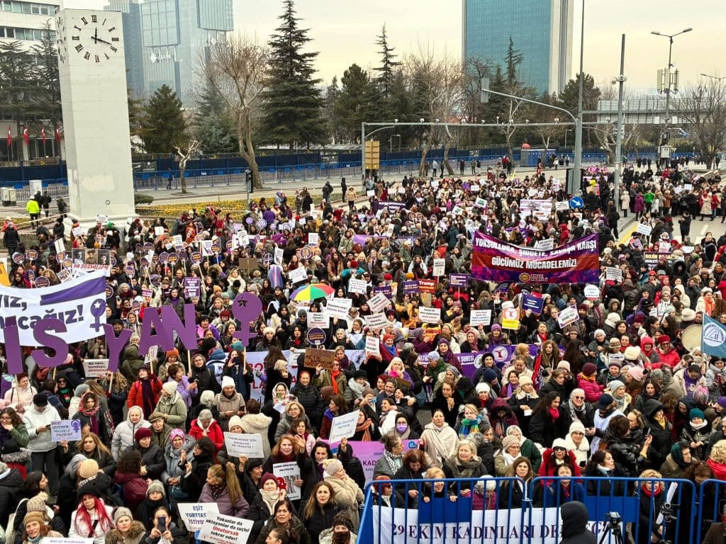 “‘Haklarımız, hayatlarımız ve özgürlüğümüz için bir aradayız’ şiarıyla gerçekleştirilen mitingde kadınlar; kadın emeğini güvencesizleştiren, yaşamlarını hedef alan ve eşitsizliği derinleştiren politikalara karşı mücadeleden vazgeçmeyeceklerini vurguladı; eşit, özgür ve barış içinde bir yaşam talebini Tandoğan Meydanı’ndan bir kez daha güçlü biçimde yükseltti.”
