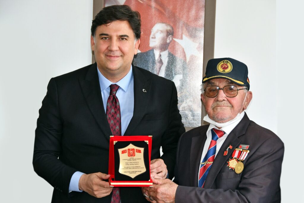 Fethiye Muharip Gaziler ve Şehit Aileleri Yardımlaşma ve Dayanışma Derneği Başkanı Namık Ünal ve beraberinde dernek yönetimi, Fethiye Belediye Başkanı Alim Karaca’yı makamında ziyaret etti. Dernek yönetimi tarafından şimdiye kadar vermiş olduğu desteklerden dolayı Karaca’ya teşekkür plaketi verildi.