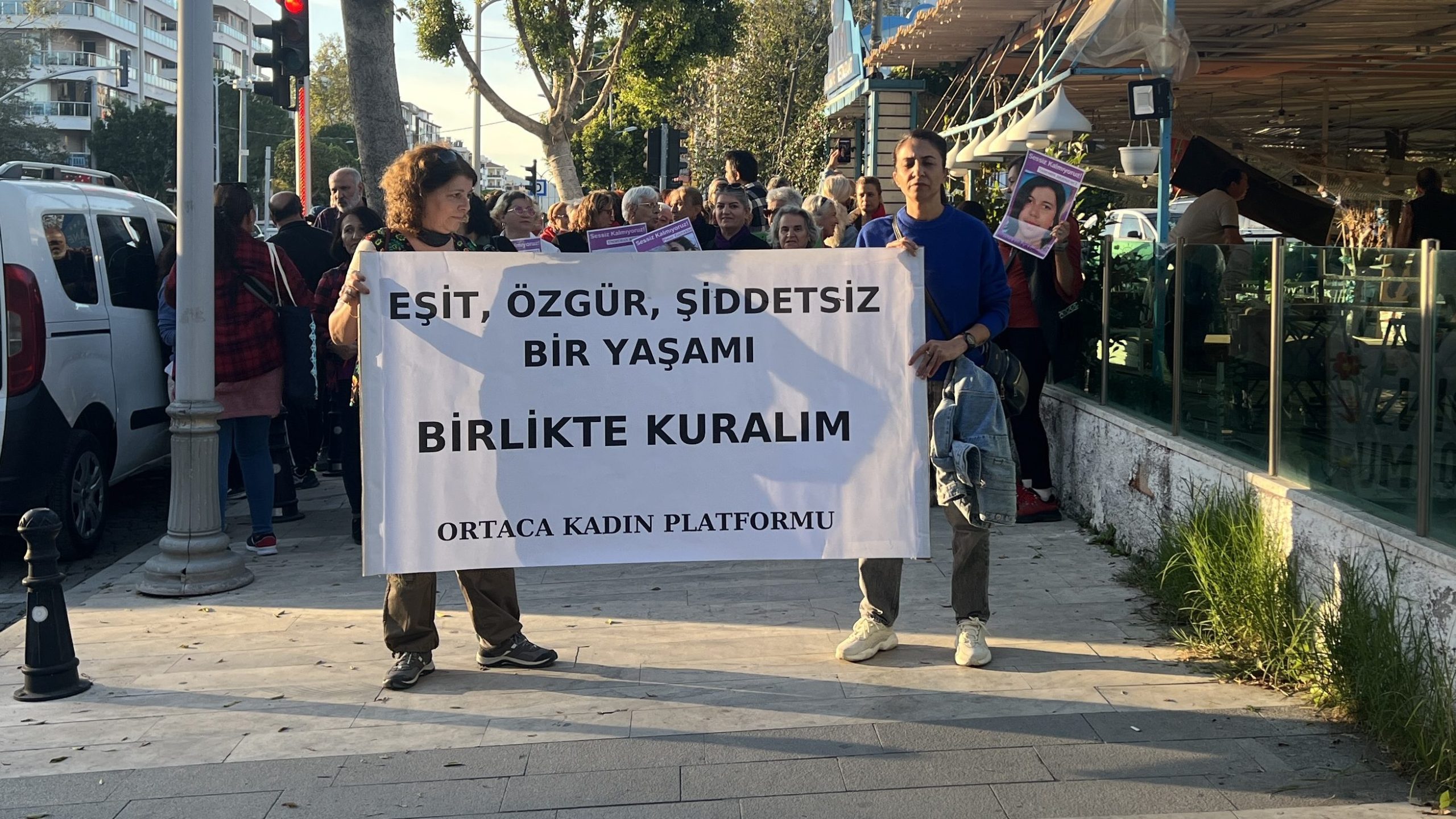 Saat 17:00’de Atatürk Bulvarı’nda bir araya gelen kadınlar Ortaca Cumhuriyet Meydanı’na yürüdüler.