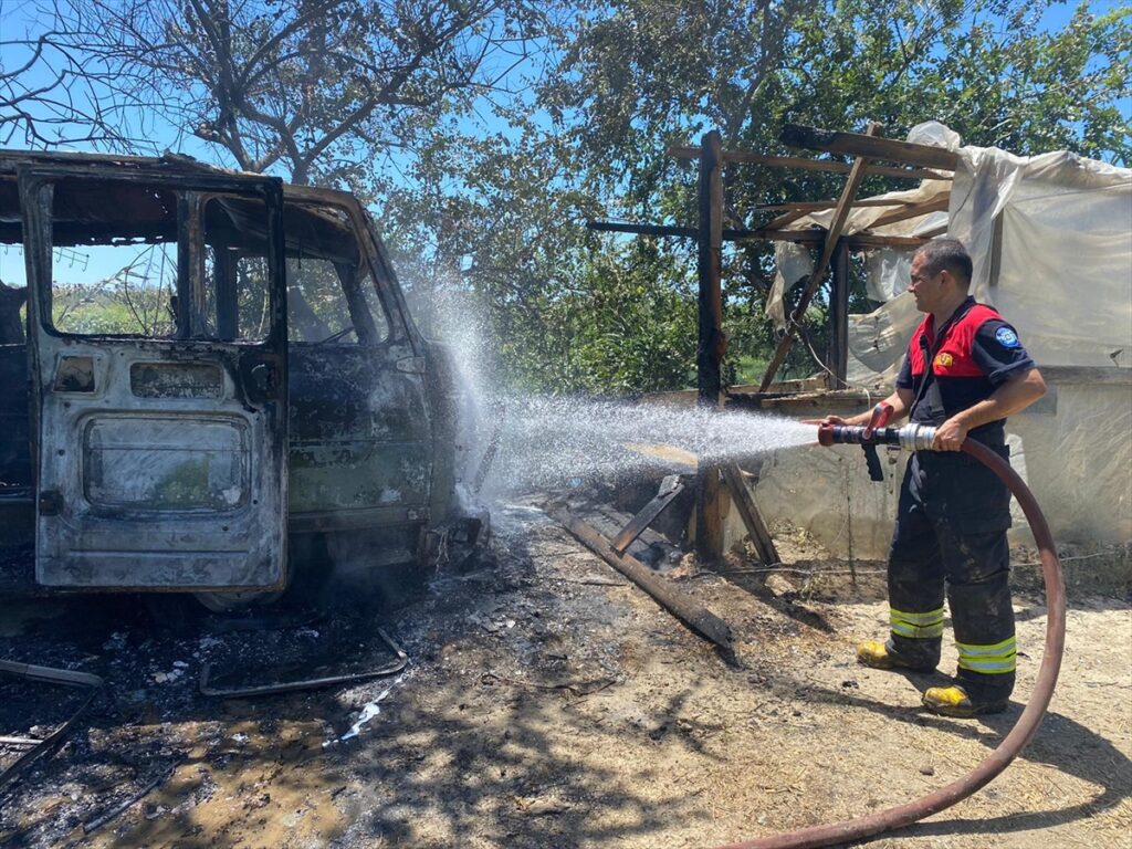 Muğla’nın Ortaca ilçesinde, park halindeki minibüste çıkan ve yakınındaki sazlık alana sıçrayan yangın söndürüldü.