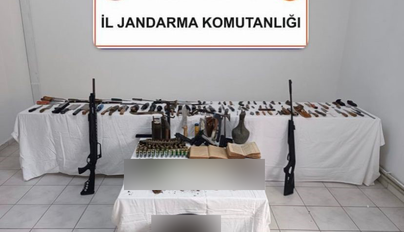 Operasyon düzenleyen ekipler; şüphelinin ikametinde bir miktar uyuşturucu, dört ruhsatsız tabanca, iki ruhsatsız pompalı tüfek, 83 av tüfeği fişeği, çok sayıda bıçak, tarihi eser niteliği taşıyan dört obje ve Osmanlı Dönemi’ne ait iki el yazması kitap ele geçirdi.