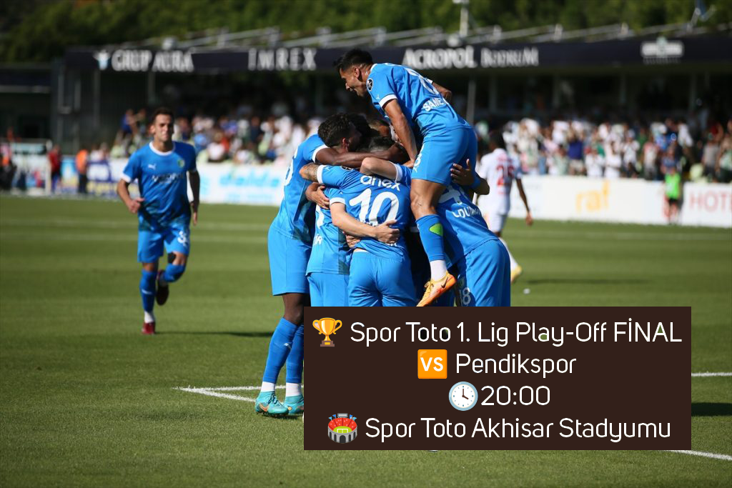 Bodrumspor, Spor Toto 1. Lig Play-Off final maçında Pendikspor’la mücadele edecek. Manisa’da Spor Toto Akhisar Stadyumu’nda oynanacak müsabaka, bugün (8 Haziran 2023) saat 20.00’de başlayacak.