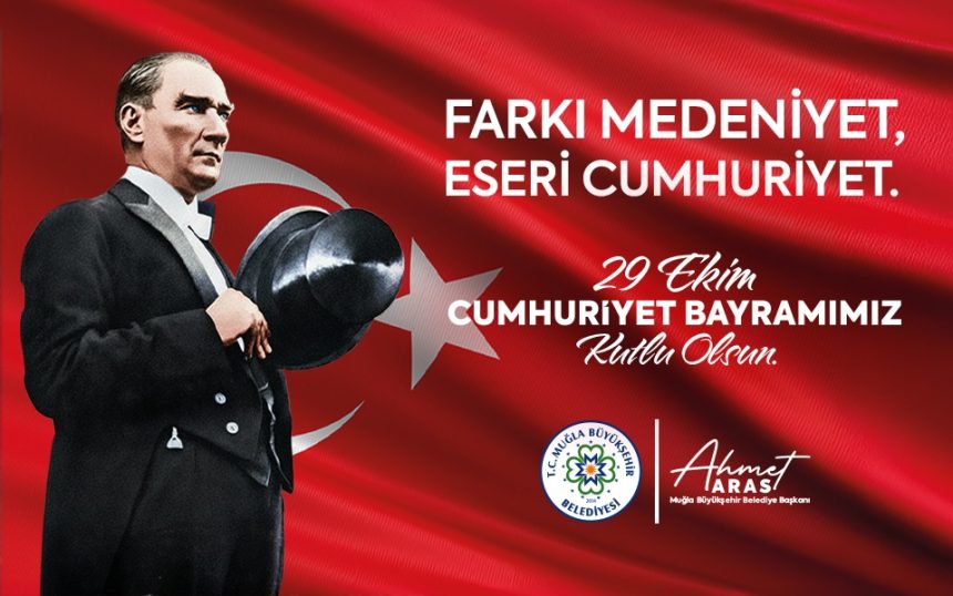 Bağımsızlığımızın mimarı Ulu Önderimiz Gazi Mustafa Kemal Atatürk’ün, ilelebet payidar kalacak eseri Cumhuriyetimizin 102. yılını kutlamanın gururunu yaşıyoruz diyen Kıyı Ege Belediyeler Birliği ve Muğla Büyükşehir Belediye Başkanı Ahmet Aras da 29 Ekim için bir mesaj yayımladı. Başkan Aras mesajında; “Atatürk ve yol arkadaşlarının 1919’da Samsun’dan başlattığı yürüyüş, milletimizin bağımsızlık ve özgürlük iradesini tarih sahnesine yeniden yazdığı bir dönüm noktası olmuştur. Yokluk, yoksulluk ve işgal koşullarında filizlenen bu irade, 29 Ekim 1923’te milletimizin tükenmeyen azmi, kararlılığı ve inancıyla “Türk milletinin karakter ve adetlerine en uygun olan idare” biçimi, Cumhuriyet ile taçlanmıştır.