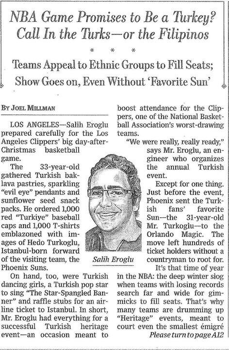 Salih Eroğlu, NBA Türk Şovu organizasyonu ile Wall Street Journal’ın kapağında yer aldı.