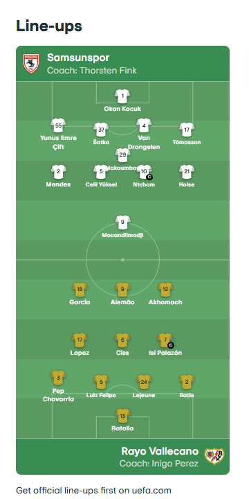 SAMSUNSPOR – RAYO VALLECANO MAÇI İLK 11