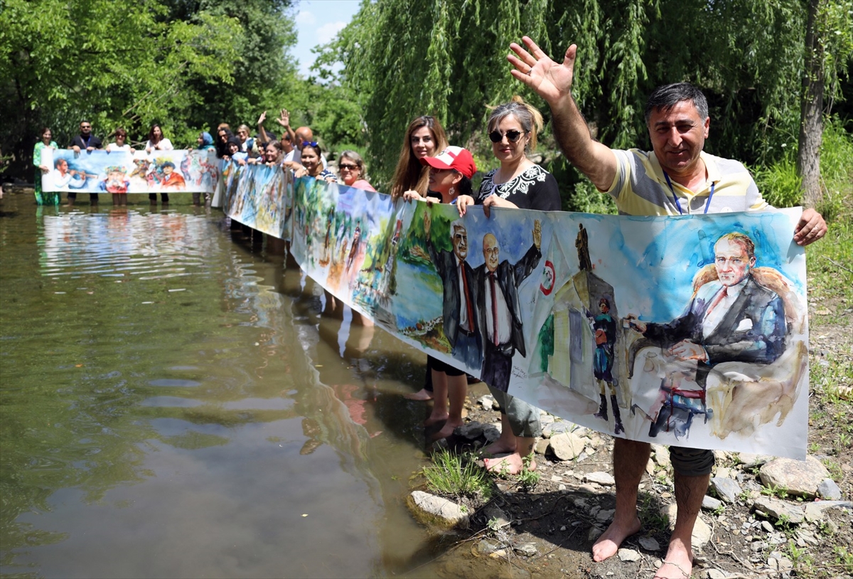 Şenlik programı kapsamında, Tarihi Belen Değirmeni’nde açılışı yapılan Sanat Kafe’de sanatçılar tarafından 20 metre uzunluğunda Menteşe panoramalı sulu boya çalışması yapıldı.