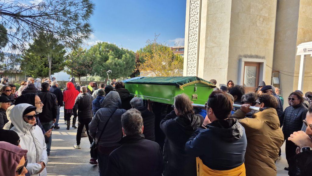 Bodrum Ortakent Kerem Aydınlar Camii’nde düzenlenen cenaze törenine; eşi İlker Sünneli, oğlu Taylan Sadıkoğlu, yakınları, sanatçı dostlarıyla ve sevenleri katıldı.