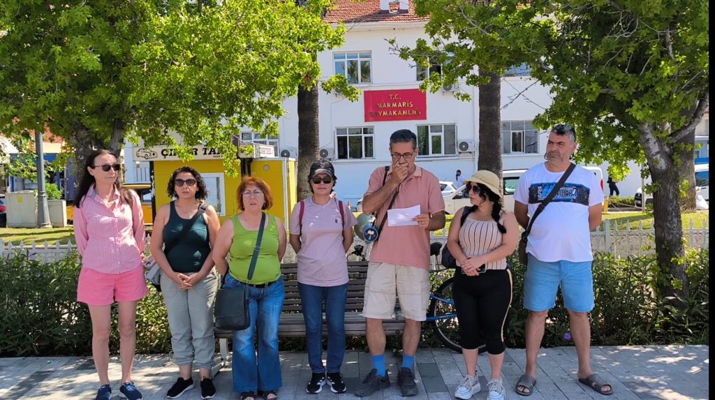 Talep dilekçesini Marmaris Kaymakamlığı’na sunan yurttaşlar, Kaymakamlık önünde basın açıklaması gerçekleştirdi.