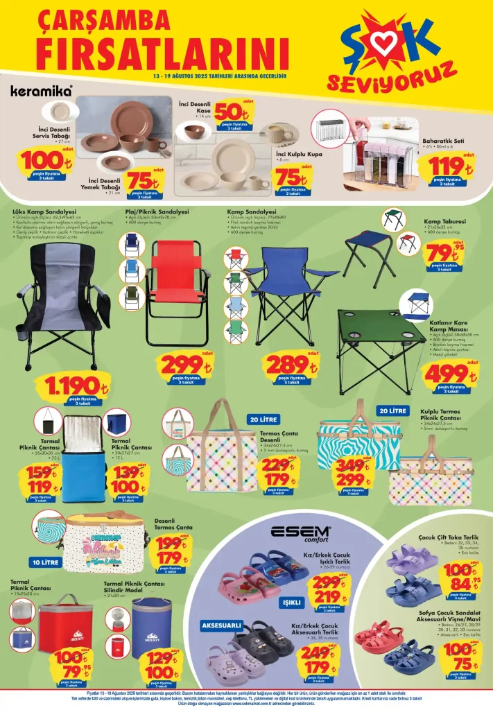 Ev & yaşam kategorisinde lüks kamp sandalyesi 1.190 TL, kamp masası 499 TL, termos çanta 179 TL’den satışta.