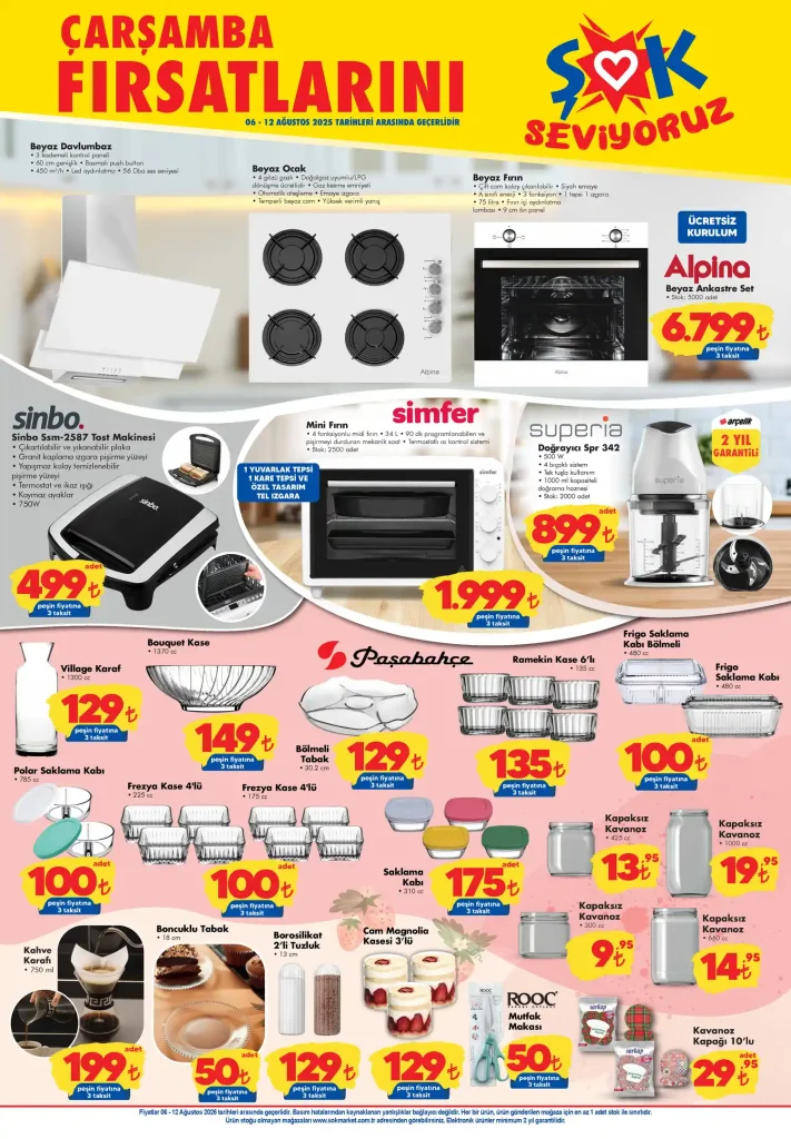 ŞOK’un 6-12 Ağustos 2025 tarihleri arasında geçerli aktüel kataloğunda Dijitsu ve Altus markalarına ait çamaşır makineleri ile deterjan, temizlik ürünleri ve yazlık tekstil ürünleri satışa sunuluyor.
