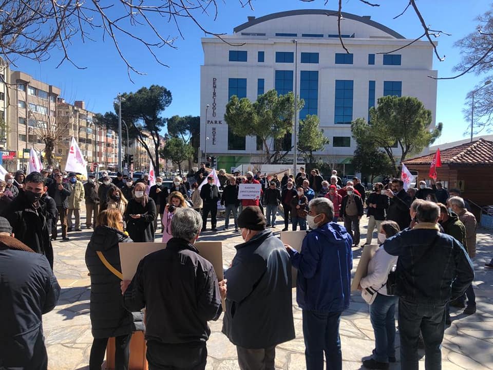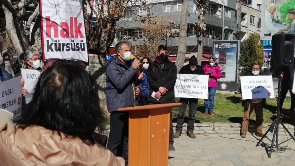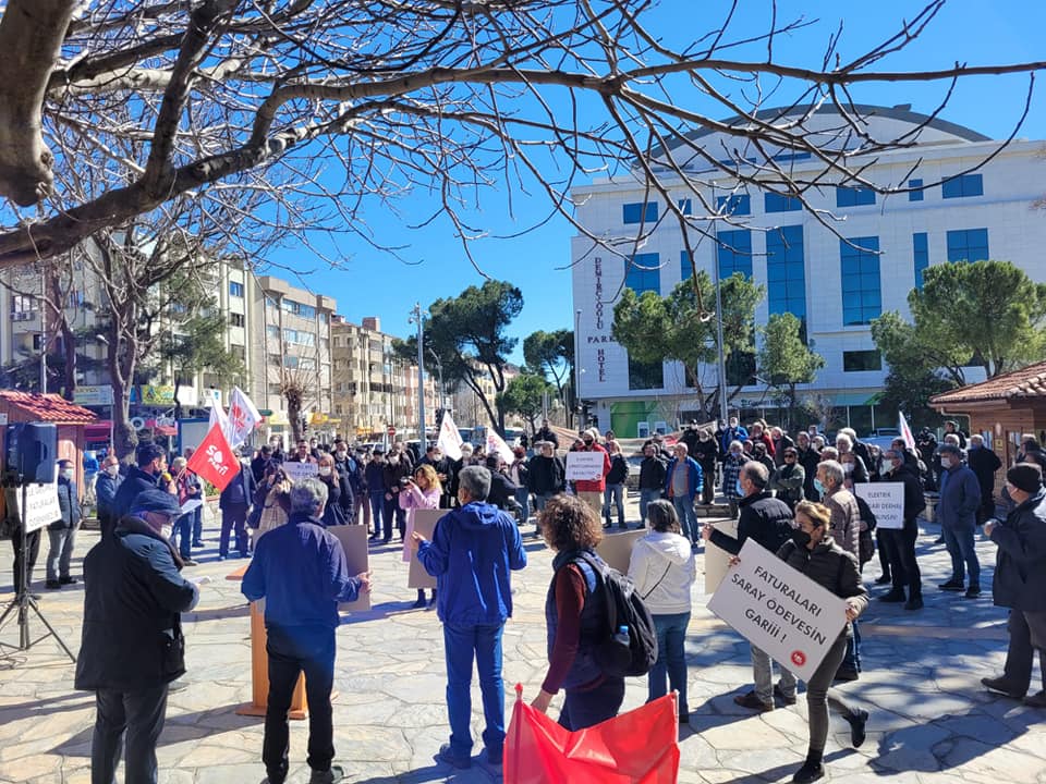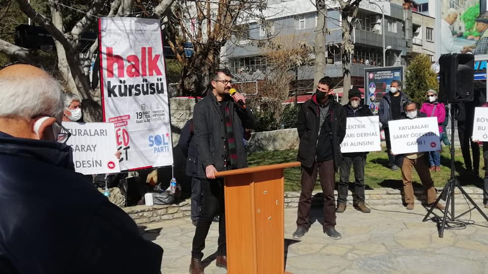 SOL Parti MYK Üyesi Ozan Sürer ise konuşmasında, AK Parti iktidarı süresince halkın hiçbir şey kazanmadığına vurgu yaparak, “Türkiye’nin içerisinden geçtiği bu ağır koşullarda elbette ki milyonlarca insan mağdur, milyonlarca insan geçim sıkıntısı içerisinde. Ancak ve ancak iktidar sözcüleri halkın bu feryadı karşısında ifade ettikleri, ‘efendim abartmayınız.’ Türkiye’de olduğu gibi dünyada da büyük bir kriz söz konusu. ‘Hamdolsun Türkiye’nin içerisinden geçtiği koşullar abartılacak değil.’ Dediler ki, ‘birlikte kazandık, bu zor süreci de hep birlikte göğüsleyeceğiz’ dediler. AKP iktidarı boyunca bu halk hiçbir şey kazanmadı. Halkın verecek tek kuruşu dahi yoktur. Şayet bu zor günleri atlatmak için bir seçenek arıyorlarsa, biz buradan söyleyelim, köprüleri, otobanları, hiç uçak inmeyen havalimanlarına aktardıkları, halkın cebinden aktardıkları milyonlarla zengin ettikleri var gitsinler onlarsa alsınlar. 5’li çete müteahhitlerden alsınlar. Yapılması gerekenler açıktır. Başta enerji şirketleri olmak üzere kamuya ait araziler, madenler, köprüler, derhal ama derhal kamulaştırılmalı, halkın denetimine açılmalıdır. Halkın denetimine açılması da yetmez. Çalan çırpan herkesten hesap sorulmalıdır. Türkiye ne kadar yağma ve talanla baş başa kalsa da kendi öz kaynakları, kendi öz gücü ile bu sorunları alabilme potansiyeline sahiptir. Dolayısıyla kapatılan fabrikalar tekrar açılmalıdır. İstihdam olanakları tekrar yaratılmalıdır” dedi.