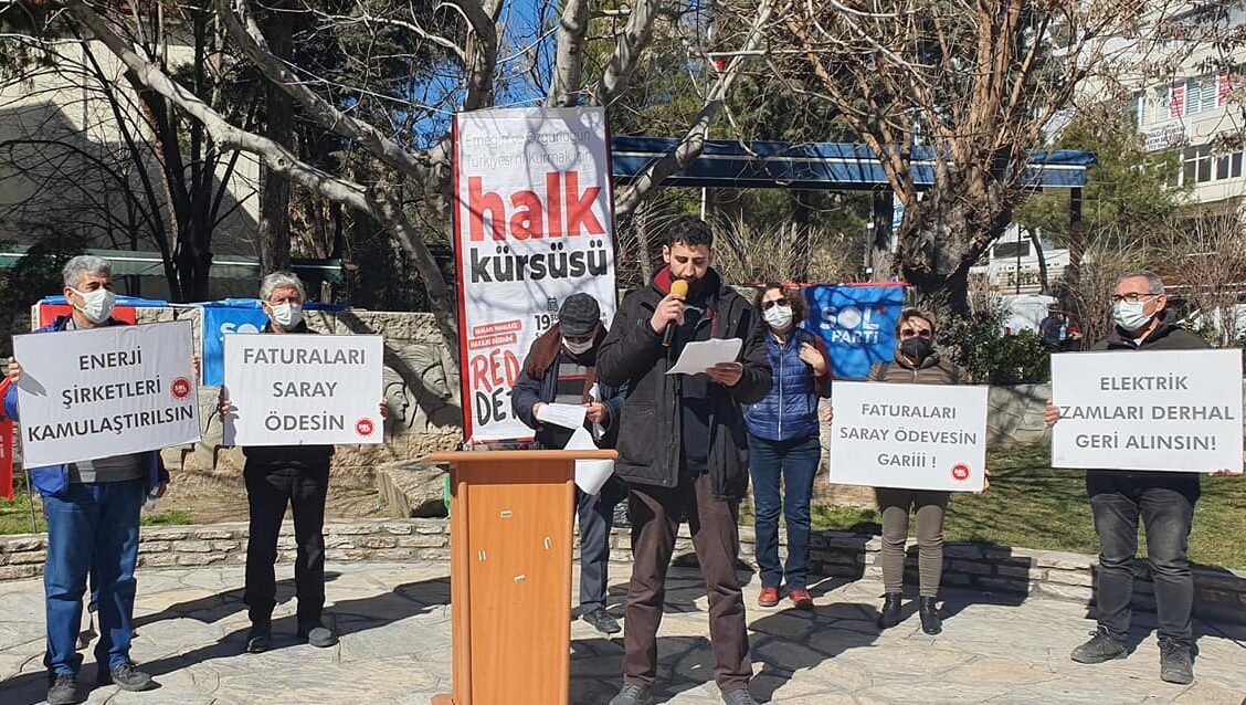 SOL Parti MYK Üyesi Ozan Sürer ise konuşmasında, AK Parti iktidarı süresince halkın hiçbir şey kazanmadığına vurgu yaparak, “Türkiye’nin içerisinden geçtiği bu ağır koşullarda elbette ki milyonlarca insan mağdur, milyonlarca insan geçim sıkıntısı içerisinde. Ancak ve ancak iktidar sözcüleri halkın bu feryadı karşısında ifade ettikleri, ‘efendim abartmayınız.’ Türkiye’de olduğu gibi dünyada da büyük bir kriz söz konusu. ‘Hamdolsun Türkiye’nin içerisinden geçtiği koşullar abartılacak değil.’ Dediler ki, ‘birlikte kazandık, bu zor süreci de hep birlikte göğüsleyeceğiz’ dediler. AKP iktidarı boyunca bu halk hiçbir şey kazanmadı. Halkın verecek tek kuruşu dahi yoktur. Şayet bu zor günleri atlatmak için bir seçenek arıyorlarsa, biz buradan söyleyelim, köprüleri, otobanları, hiç uçak inmeyen havalimanlarına aktardıkları, halkın cebinden aktardıkları milyonlarla zengin ettikleri var gitsinler onlarsa alsınlar. 5’li çete müteahhitlerden alsınlar. Yapılması gerekenler açıktır. Başta enerji şirketleri olmak üzere kamuya ait araziler, madenler, köprüler, derhal ama derhal kamulaştırılmalı, halkın denetimine açılmalıdır. Halkın denetimine açılması da yetmez. Çalan çırpan herkesten hesap sorulmalıdır. Türkiye ne kadar yağma ve talanla baş başa kalsa da kendi öz kaynakları, kendi öz gücü ile bu sorunları alabilme potansiyeline sahiptir. Dolayısıyla kapatılan fabrikalar tekrar açılmalıdır. İstihdam olanakları tekrar yaratılmalıdır” dedi.