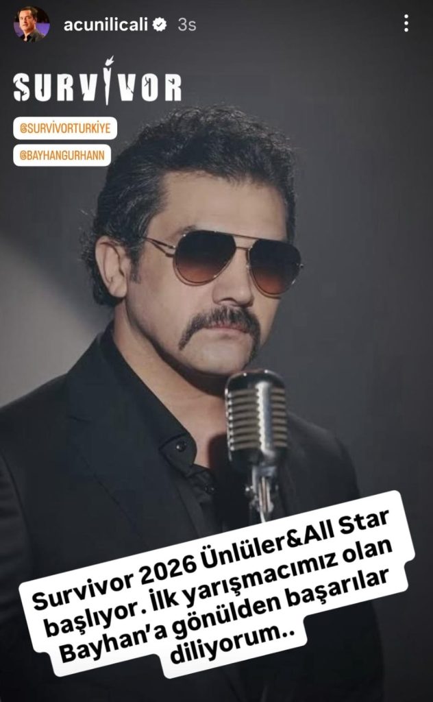 Acun Ilıcalı, paylaşımında “İlk yarışmacımız olan Bayhan’a gönülden başarılar diliyorum” ifadelerine yer verdi. Bu açıklamanın ardından gözler, Survivor All Star 2026’nın diğer yarışmacılarına çevrildi.